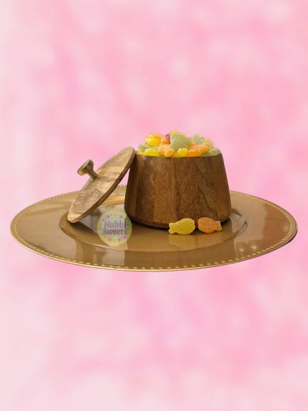 Suiker, glucosestroop, zetmeel, gemodificeerd zetmeel, voedingszuren (citroenzuur, melkzuur), aroma’s, zuurteregelaar (kaliumtartraat), kleurstoffen (paprika-extract, curcumine), concentraten van (spirulina, saffloer, wortel, zwarte bes).