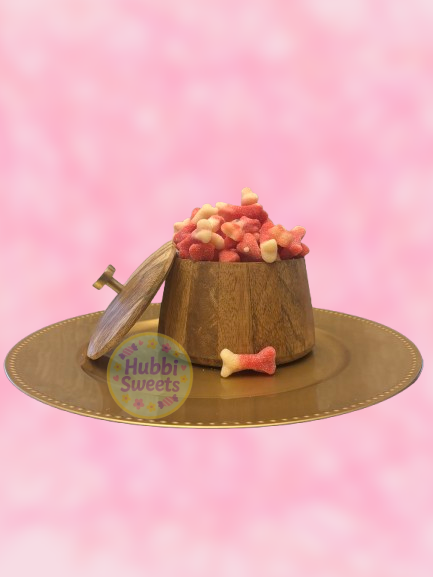 Sirop de glucose, sucre, eau, gélatine de bœuf halal, amidon de pomme de terre modifié, acidifiants : E330, E270, arômes, huile végétale (palme), agent d'enrobage : E903, colorants : E100, E120, E129, E133.