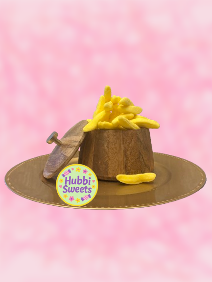 Sirop de glucose, sucre, eau, gélatine de bœuf halal, amidon de pomme de terre modifié, acidifiants : E330, E270, pectine, arômes, colorant : E100.