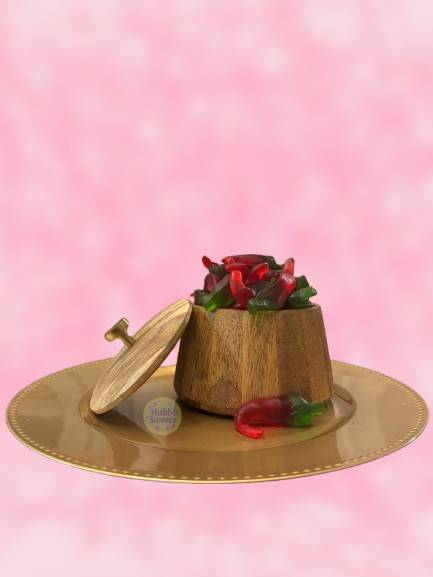 Glucosestroop, suiker, water, gelatine, gemodificeerd aardappelzetmeel, zuurteregelaars (E330, E296, E270), aroma’s, kleurstoffen (zie stempel op verpakking), plantaardige olie (palm), glansmiddel: carnaubawas.
