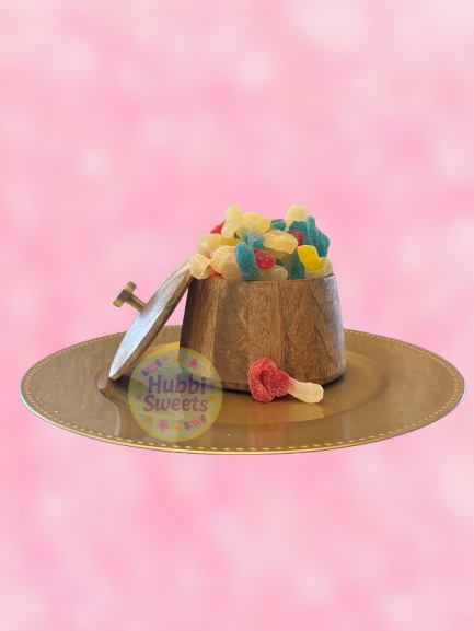 Suiker, glucosestroop, gelatine, water, gemodificeerd maïszetmeel, voedingszuren (E330, E296, E270), aroma’s, plantaardige oliën (kokos, palm), glansmiddel (carnaubawas), kleurstoffen (E102, E129, E133).