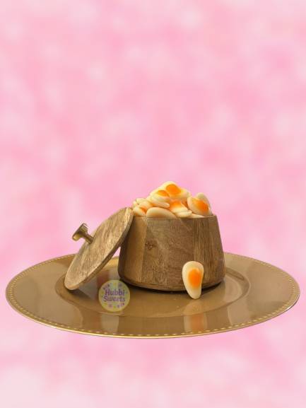 Suiker, glucose-fructosestroop, tarwebloem, voedingszuren (appelzuur, citroenzuur), dextrose, plantaardige vetten (bijv. palmolie of zonnebloemolie), aroma’s, kleurstoffen (kan o.a. E100, E133, E150d, E163 zijn), antioxidanten (tocoferolrijke extracten of ascorbinezuur).